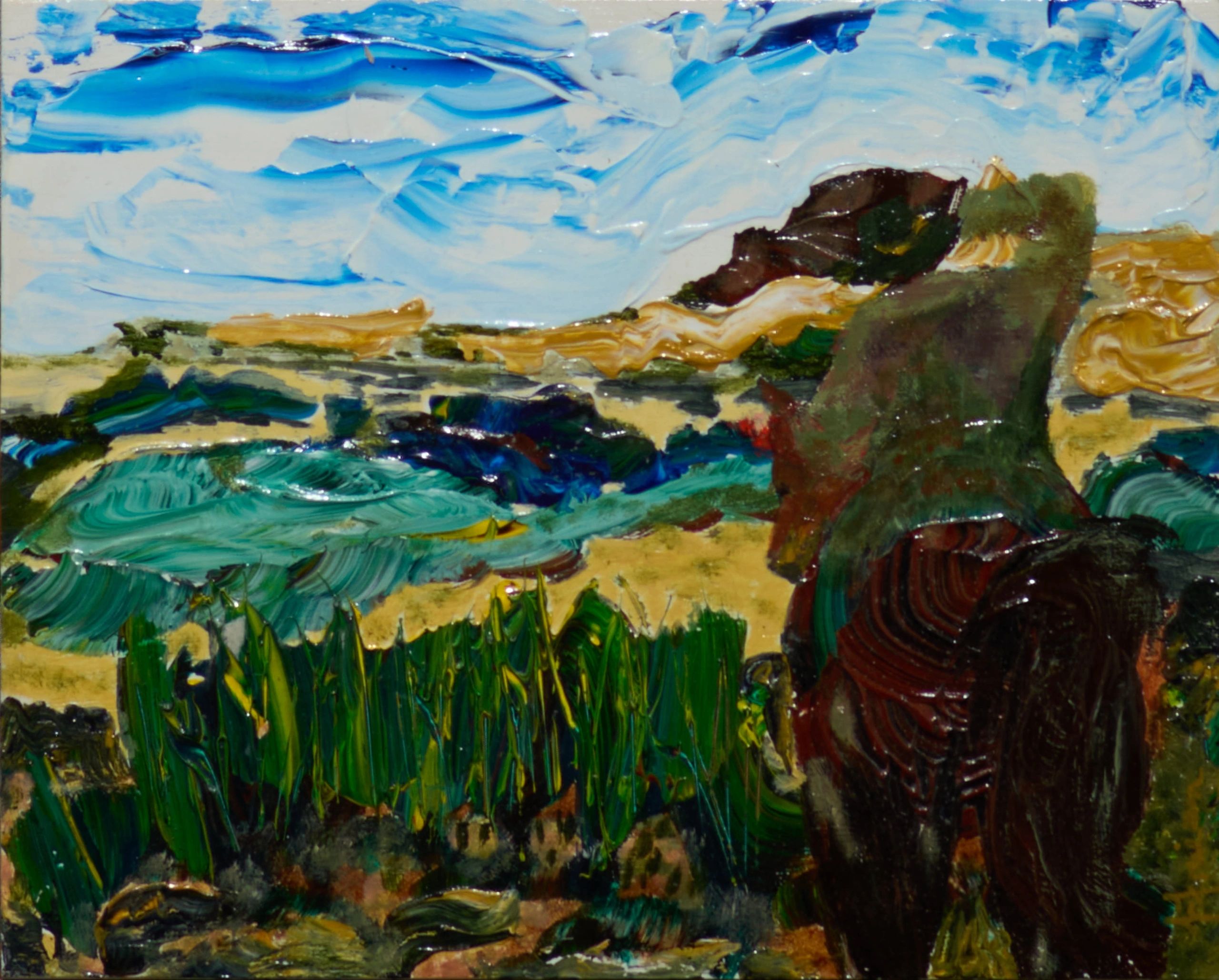 Original acrylic on 20" x 16" plastic coated canvas grain oil paint support mounted on cradled birch panel - 2018
